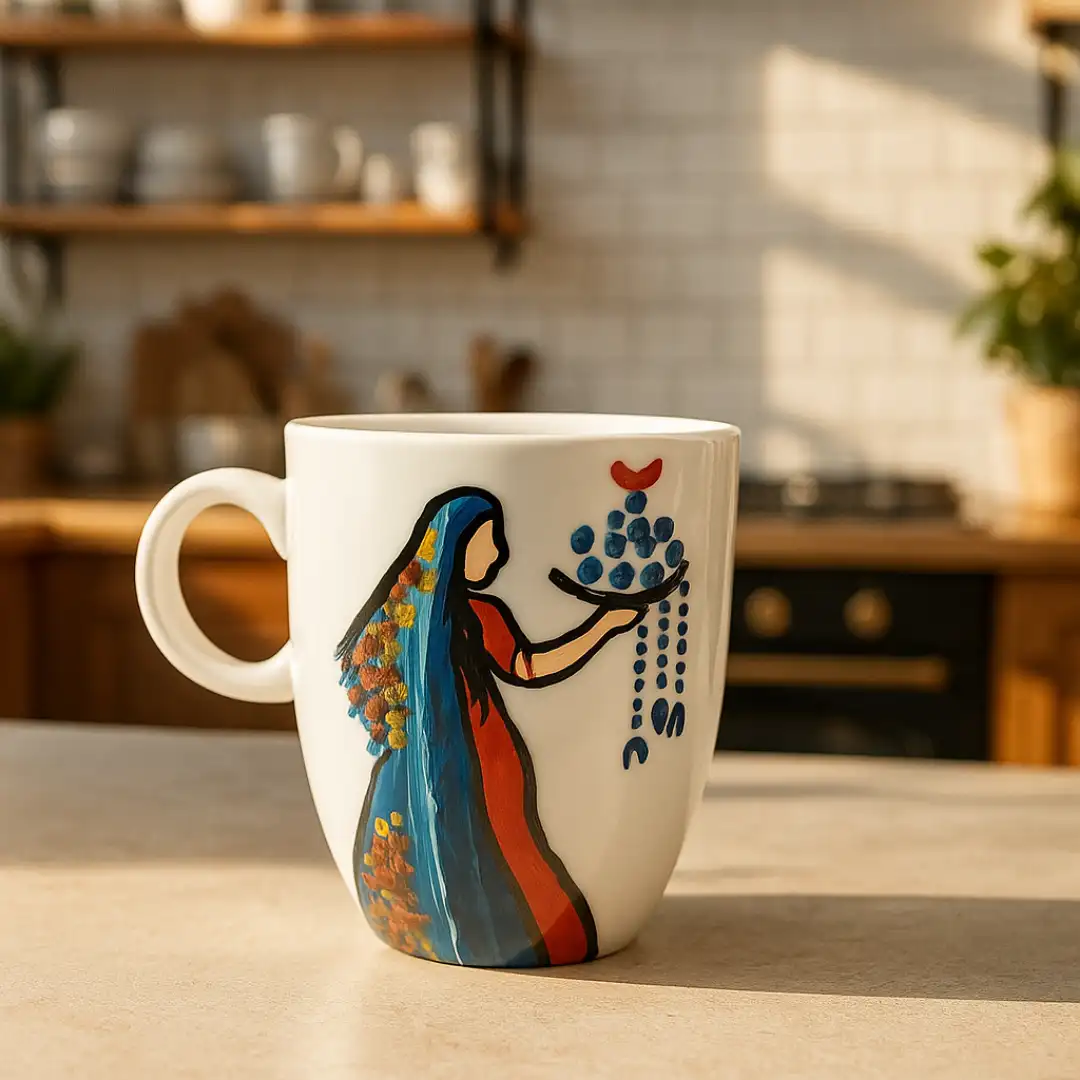 Hand painted porcelain mugs with heritage scenes of Egypt